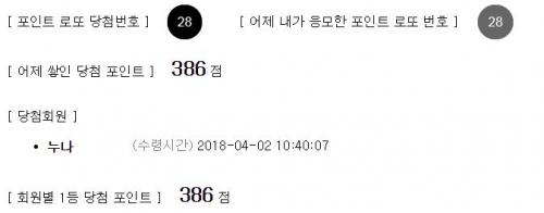 얼마전 거의 3달넘어 당첨된게 61포인트인데...386이면 초대박이네요..축하드립니다. | ||