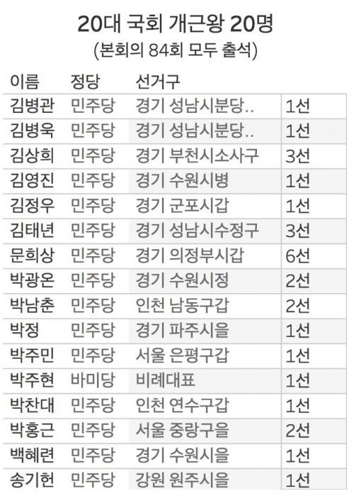 개근은 거의 초재선인데 6선 문희상 ㄷㄷ | ||