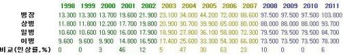 제가 복무할 때 인상률이 막 높아지기 시작했었네요~ | ||