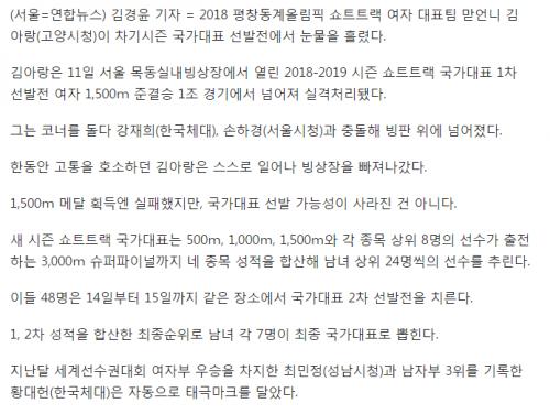 하필 어제 영재발굴단에 나온 김아랑 선수를 봐서 그런지 마음이 아프네요 ㅠㅠ | ||