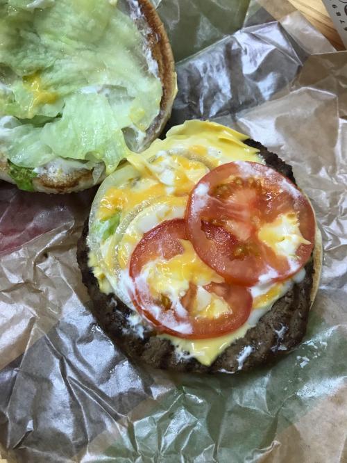 토마토 두께 얇아졌네요 ㅎㅎ패티는 어째구워서 저런걸까요.. | ||