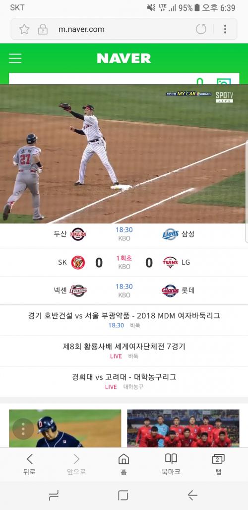 네이버 플레이어로 야구 보면서 인터넷창 켜둔 건데요..
