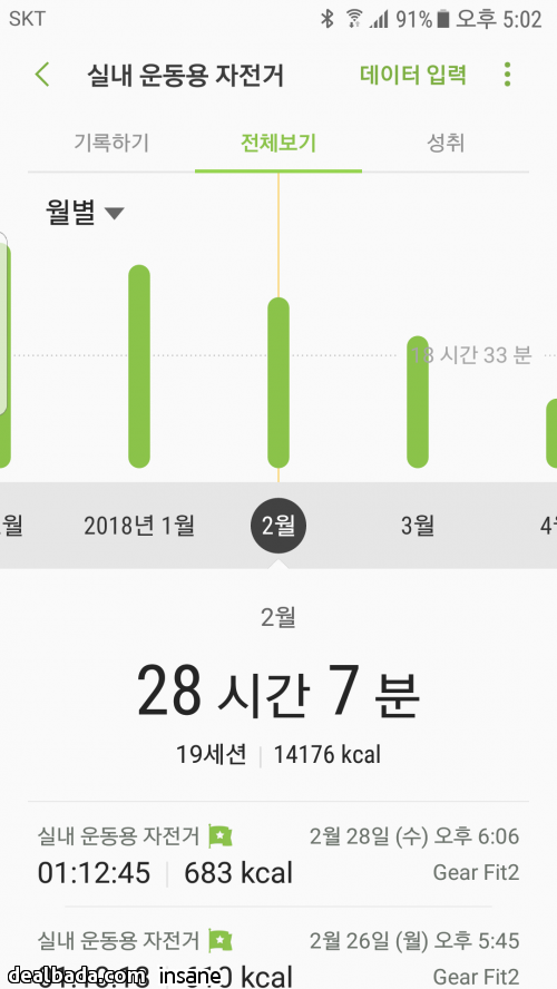 운동때마다 세팅 바꾸기 귀찮아서 그냥 심박수 측정 키놓고 실내운동용 자전거 세팅으로 쭉 측정한거에요