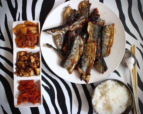 꽁치하나만 있어도 한끼식사에 충분하죠. | ||
