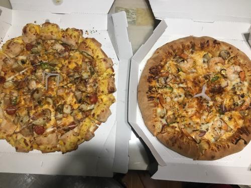 오른쪽이 킹프론씨푸드 더블치즈엣지로 변경한거에요