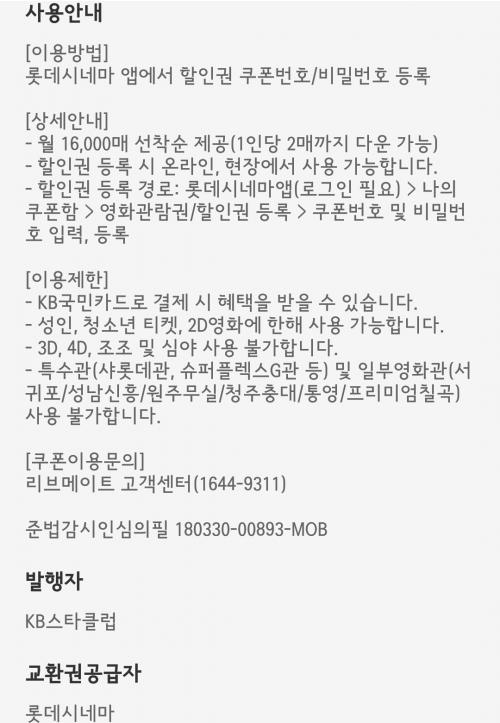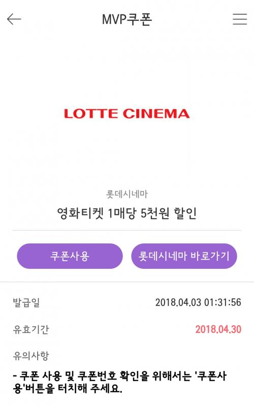 예매일 기준 이달까지 쓸 수 있는 롯데시네마 할인 쿠폰입니다