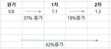 37%는 원가에 대한 증가분이고 18%는 1차에 대한 증가분이니까 당연히 둘이 더하면 안되는거죠.. | ||