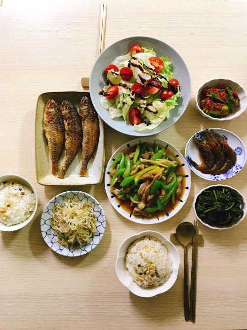 돼지고기샐러리볶음 과, 굴비 굽고,