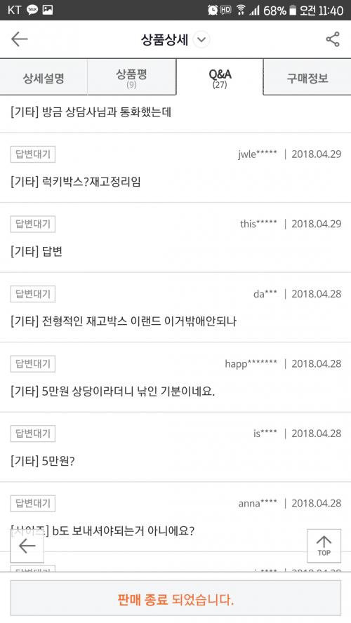 판매자 잘못이라고 인정해놓고서 반품기 받아보리기;; | ||