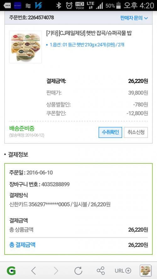 씨제이몰 중복 5천원 쿠폰이 3계에 1장씩 들어와있길래 햇반은 개당 546원정도에 48개 주문했고,
