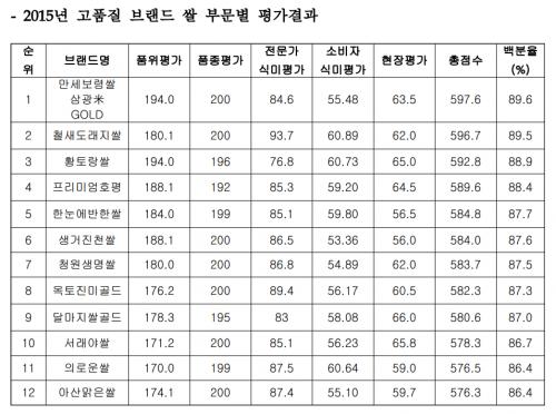 한국소비자단체협의회가 농림축산식품부 후원으로 진행하는 2015 고품질 브랜드 쌀 평가 결과가 오늘 발표 됐습니다.
