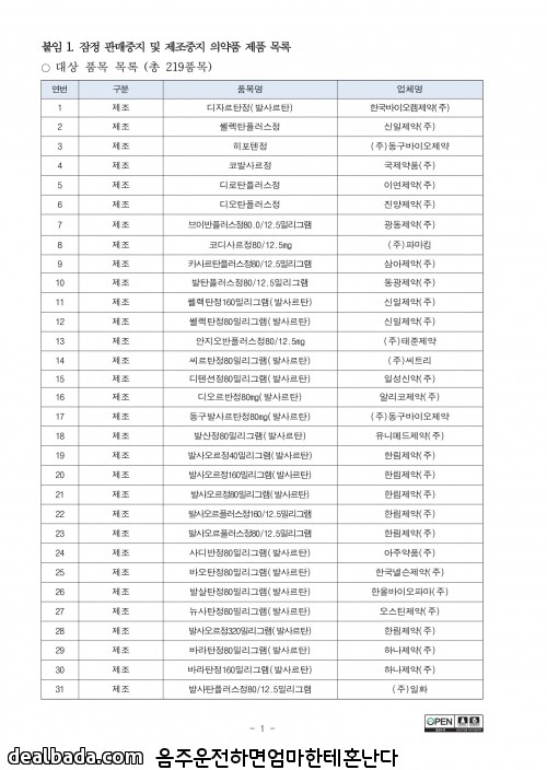 219종 모두 발사르탄 원료로 만든 혈압약이니