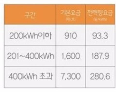 200키로와트 까지는 93원계산, 남은 60키로와트가 187원으로 계산되는겁니다.