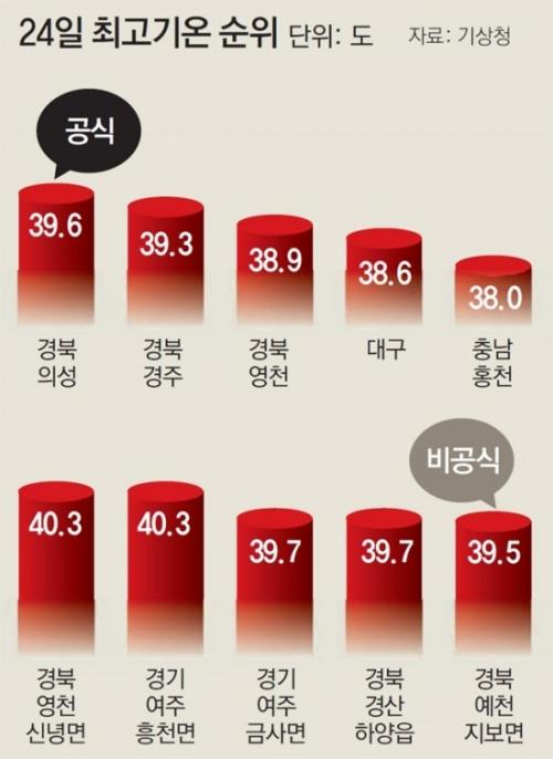 *역대 공식 최고기온은 1942년 8월 1일 대구에서 기록한 40.0도