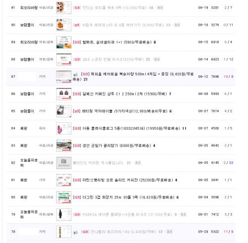 국내핫딜에서 제목 g9로 검색한 두번째 페이지인데