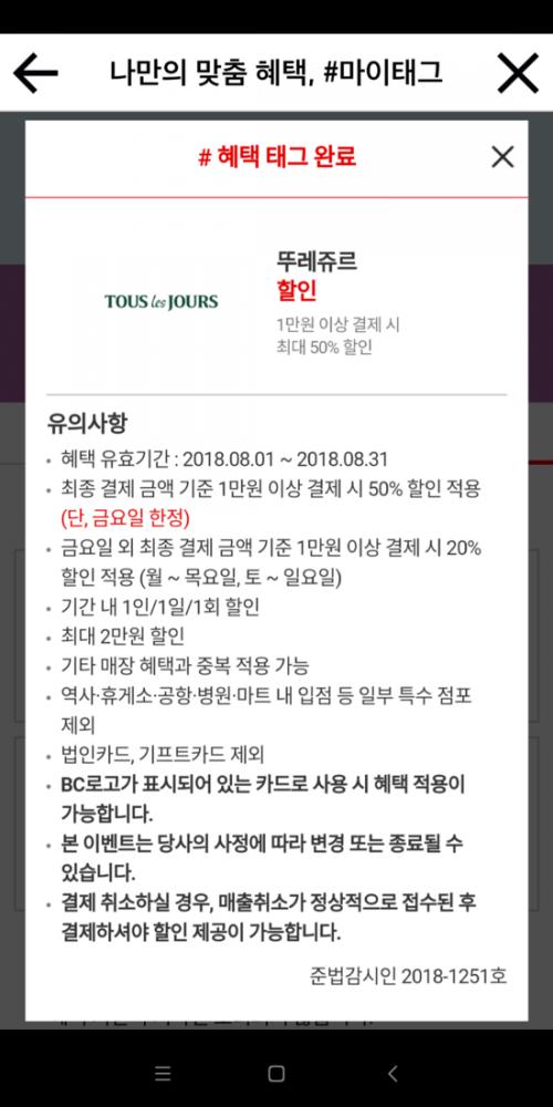 뚜레쥬르 1만원이상 결제시 최대 50%할인 태그 터치(터치시 자동으로 태그완료)