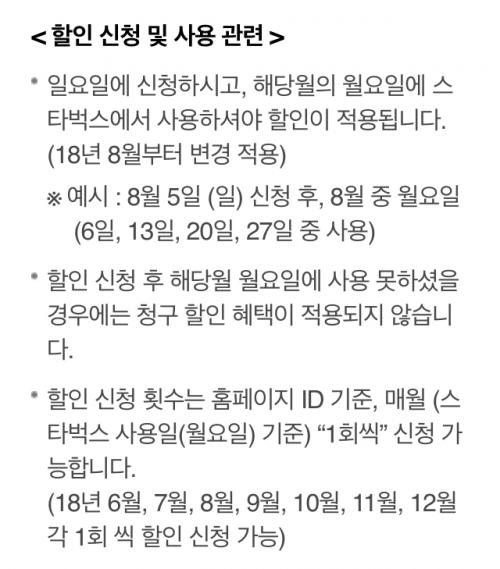 저번달에는 신청한 다음주월욜만 적용되던데 이번달은 조건이 완화됫네요 ㅎㅎ | ||