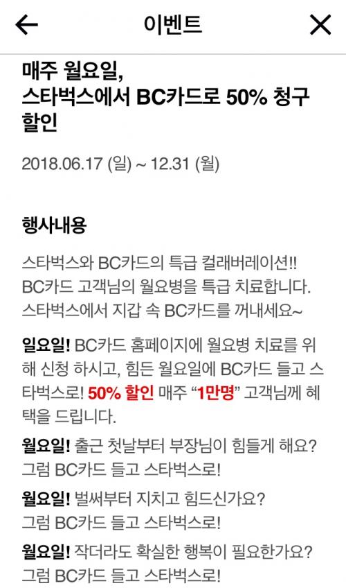실적 조건 확인하시고 가능한 분은 신청하셔서 내일 반값에 스벅 즐기세요