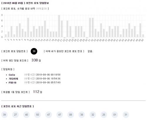 바꿔말하면 제가 어제 뽀또 안했기 때문에 39번이 몇달만에 당첨 되었다는 말이네요..;; | ||