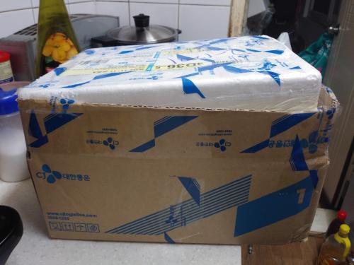 박스가 대한통운인거 보니 원래 아이스박스만 포장해서 보냈는데 배송사에서 깨먹고 상자로 포장해서 보냈나봐요 ㄷㄷ | ||