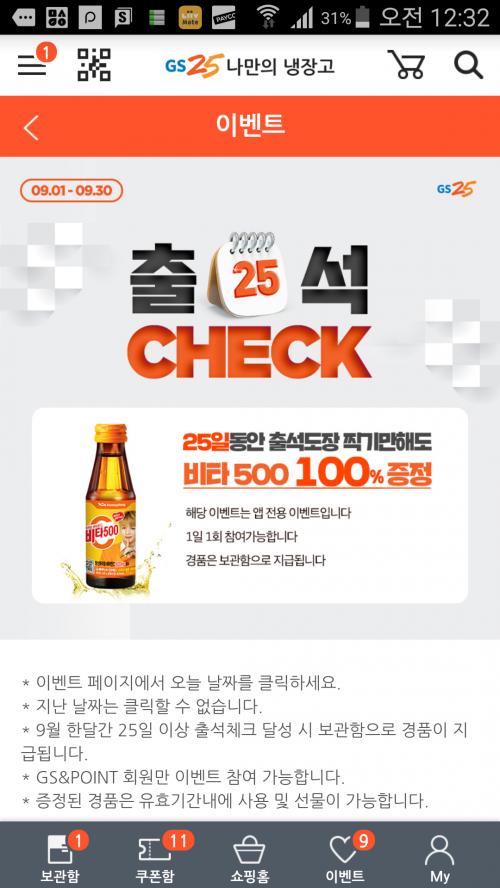 저는 이벤트 페이지 누르면 여러 이벤트 이미지 중 출첵 이벤트 이미지에 2병이 있길래 비타500이라 2개나 주나 했는데 누르니까 1병만 나오네요 ㅋ | ||