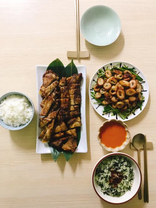 목요일은 저녁 7시 넘어 집에 들어오는 날이라, 간단히 식사만 하려고 했는데, 급 친정식구들 방문으로 고기만 넉넉히 구워 봤어요.