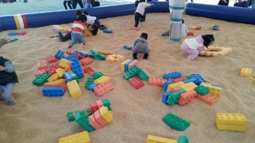 칼국수 축제 한가운데는 아이들 놀으라고 놀이터가 마련되어 있습니다.