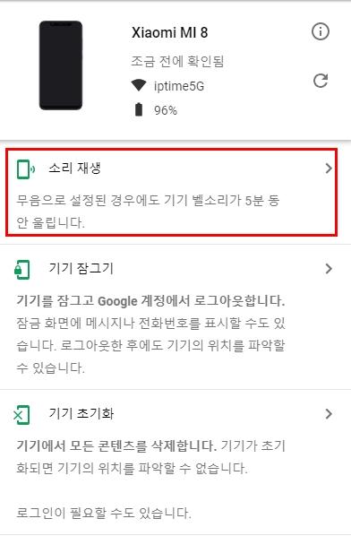 구글에 등록된 본인 기기에서 원격으로 벨이 울립니다.