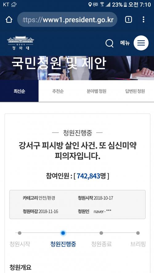 우연히 청원관련 뉴스보다가 찾아보니 살인자동생사형부터 경찰처벌까지 다양했으나 제일많은 청원으로 하다보니 다보지못하고 올렸으니 저처럼 더찾아서 청원하셔도 좋을것 같아요 | ||