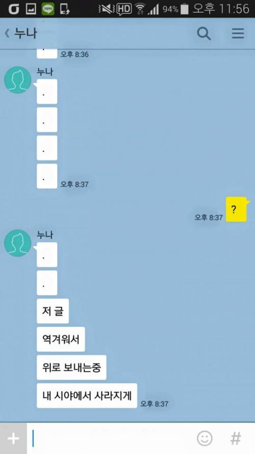 보기싫음 그냥 대화방을 나가면 될것을... | ||