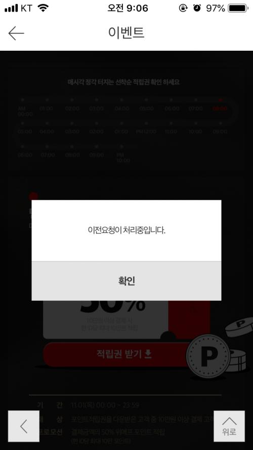 다 나갔으면 발급이 다 됐다고 뜬거 같은데. 이제 다시 눌러보면. 이전요청이 처리즁입니다라고 뜨네요.