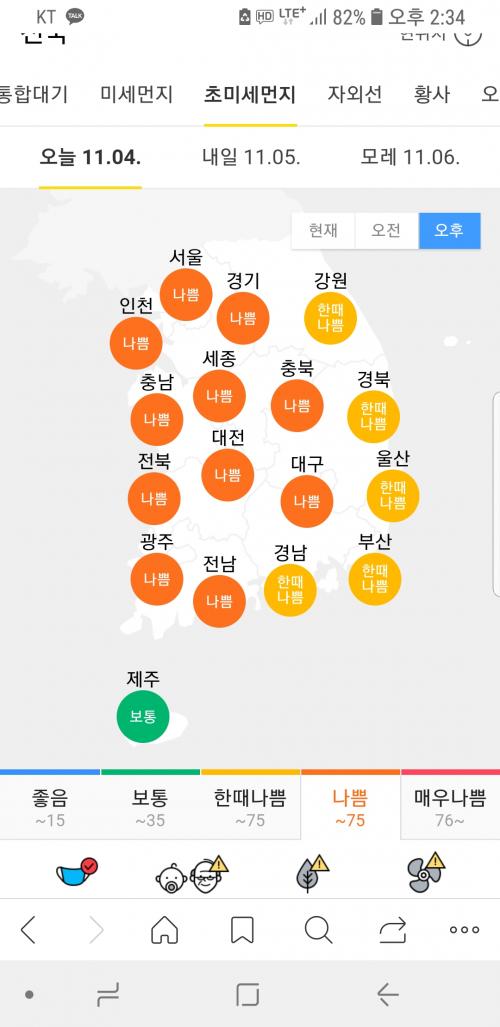 또 나빠지네요...월요일 마스크 고려해야 겠습니다.. | ||