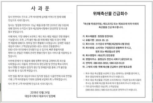 그 제품 전체를 환불조치 한다는 안내가 있네요