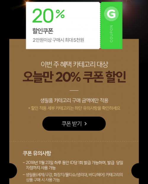 오늘 지마켓 생필품 카테고리 20% > 자유게시판