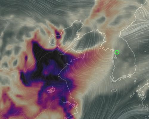 어제 중국에서 먼지구름 크게 생기고