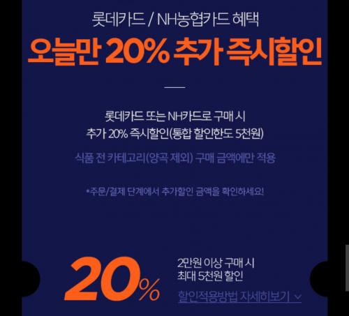 롯데/농협카드 20% 즉시 할인 (2만 이상 최대 5천 할인)