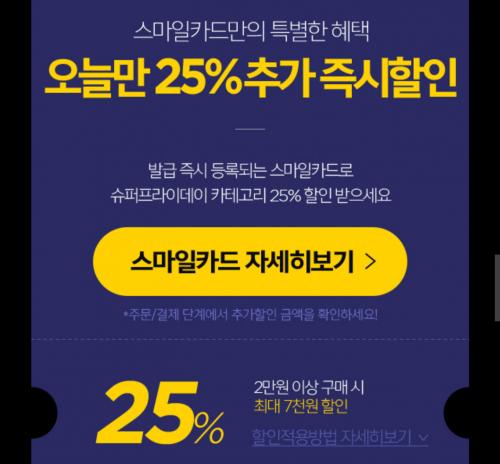 스마일카드 25% 즉시 할인 (2만 이상 최대 7천 할인)