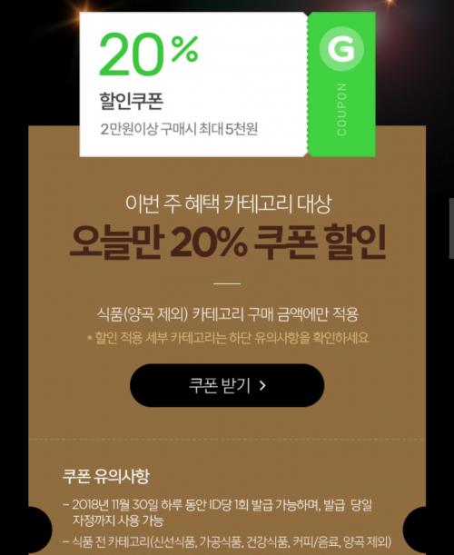 20% 할인 쿠폰 (2만 이상 최대 5천 할인)