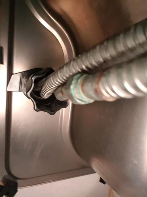 까만부분을 손으로 잡고 돌리셔야하는데 가능하시면 다른 손은 바깥쪽의 수전을 잡아 고정하세요.