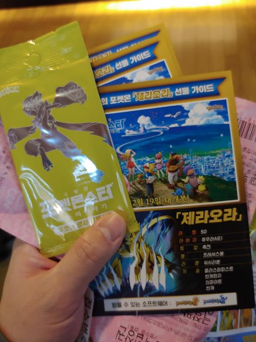 3명이서 봤더니 제라오라 포켓몬카드도 3장 ㅎㅎ