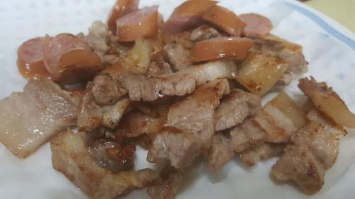 크리스마스 이브라고 베스킨라빈스에서 3단케잌 사고 삼겹살에 소시지도 구웠네요
