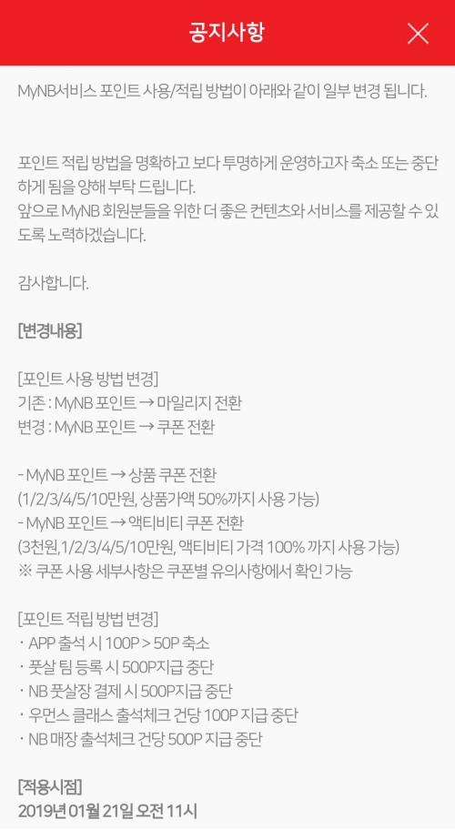 네 공지에 nb포인트->마일리지 변환만 막히는거라