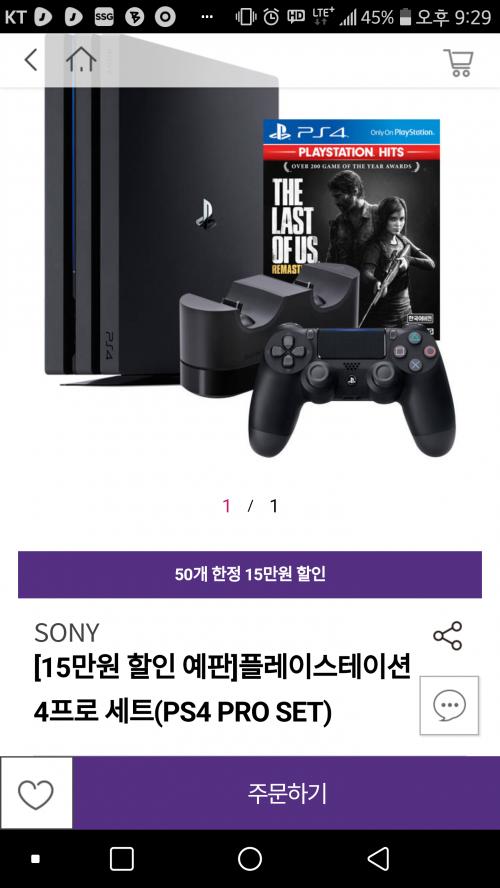 ps4 pro기본세트+듀얼쇼크 거치대(대략 신품 3만원)+ 라오어 타이틀(2만5천?) 을