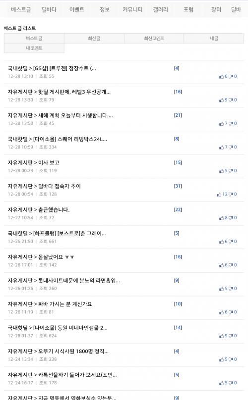 베스트글은 현재 제목은 보이는데..
