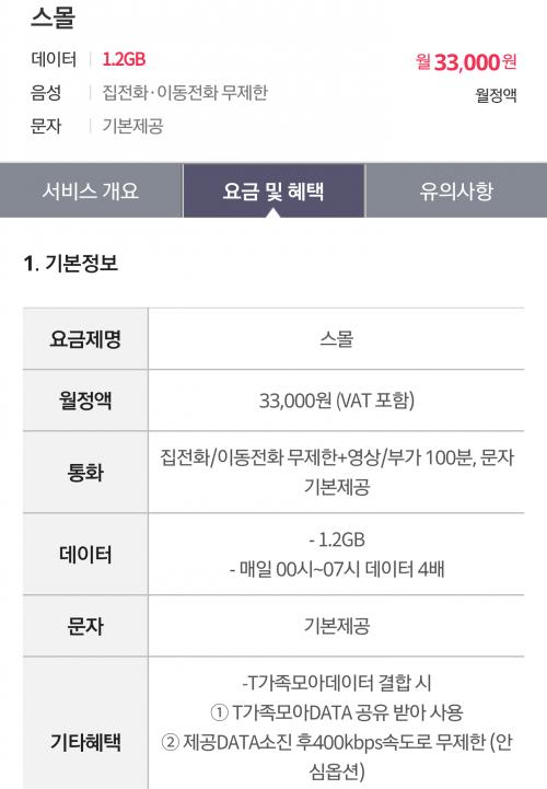 스몰은 가족중 패밀리 이상 요금을 아무도 안 써도 가입이 가능합니다.
