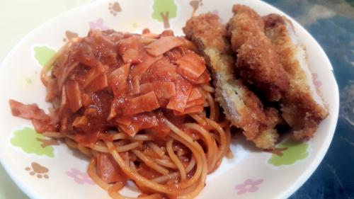 나의 최애 음식인 스파게티와 돈가스를 한그릇에...오늘 저녁 회식인데 가와이이님 집으로 가고 싶습니다.ㅎㅎ