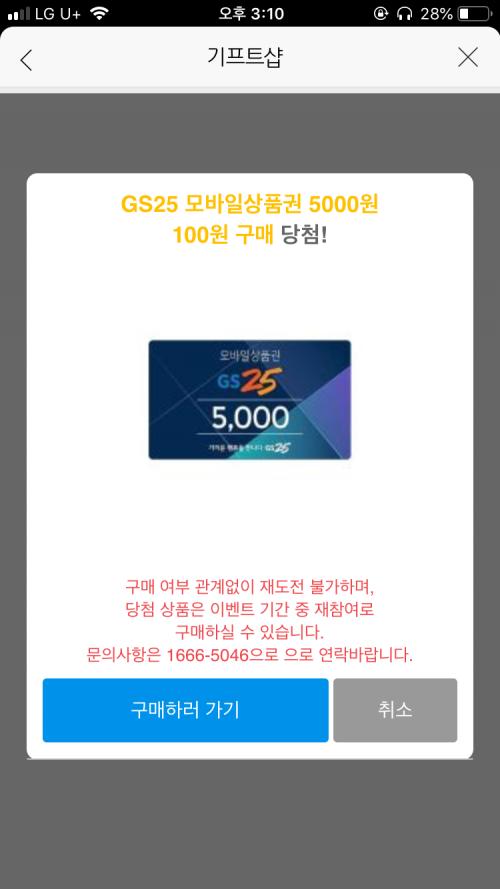 저는 이거랑 이디야 빼고 나왔네요 지에스25 당첨 축하드려요 | ||