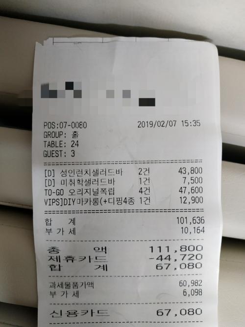 샐러드바 드시고 투고 챙기시려면