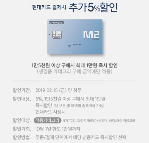 현대카드 5% 즉시할인 (1만 5천 이상 최대 1만 할인)