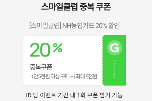 [스마일클럽] 농협카드 20% 중복쿠폰 (1만 5천 이상 최대 5천 할인)